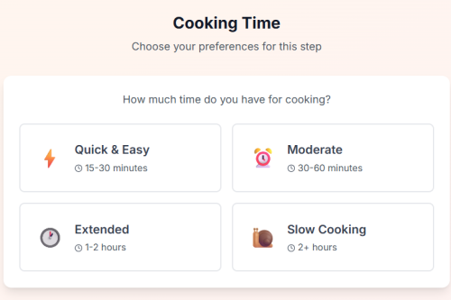 Breakfast, lunch or dinner. Who says you can’t have breakfast for dinner? In a hurry and don’t have much time? Recipes can be generated based on preparation and cooking time.